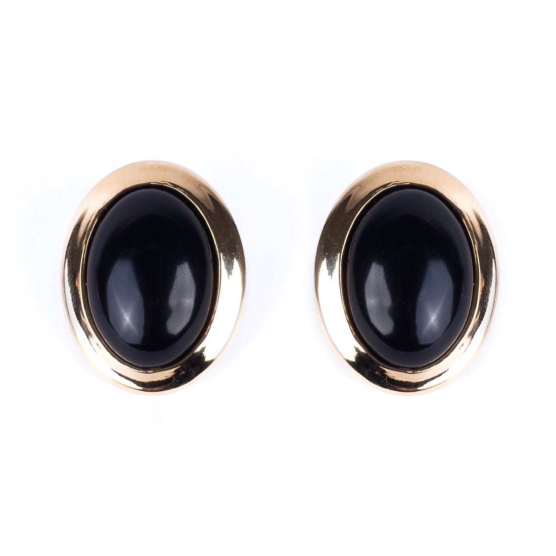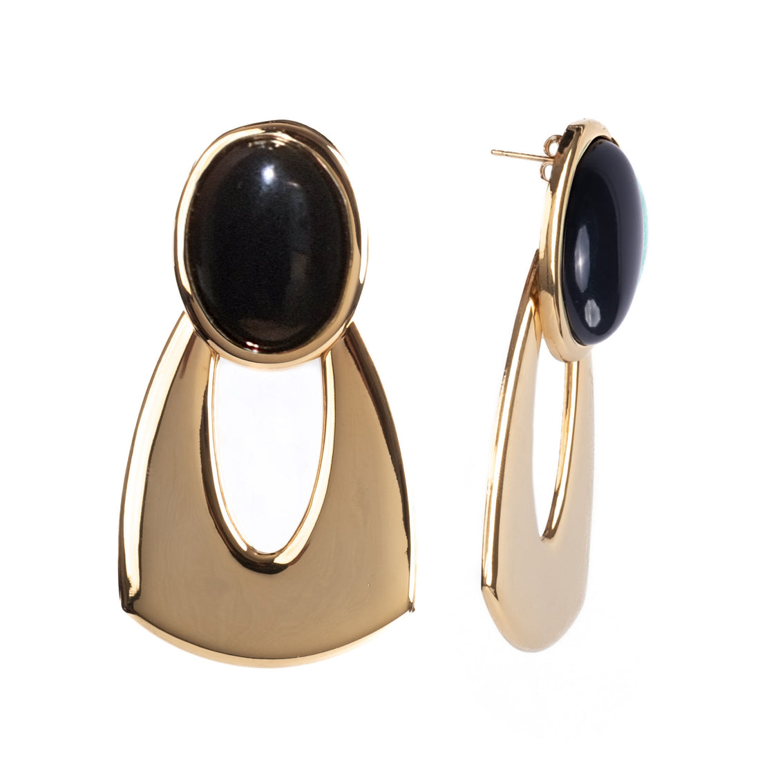 Eleganti orecchini realizzati con pietra ovale cristallo e cabochon pendente nero, i nostri C A...
