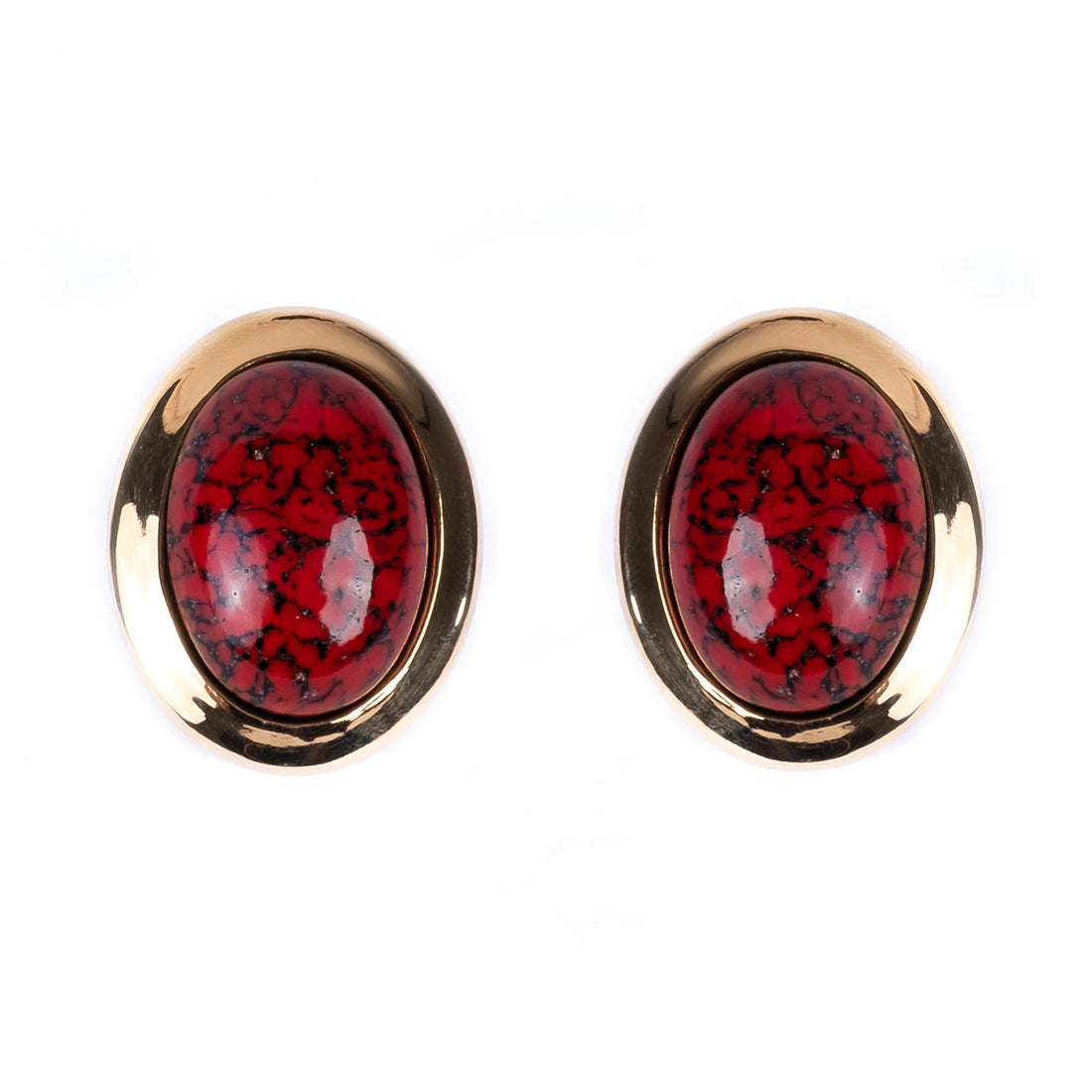 Eleganti orecchini realizzati con pietra ovale cristallo e cabochon pendente bordeaux, i nostri C A...