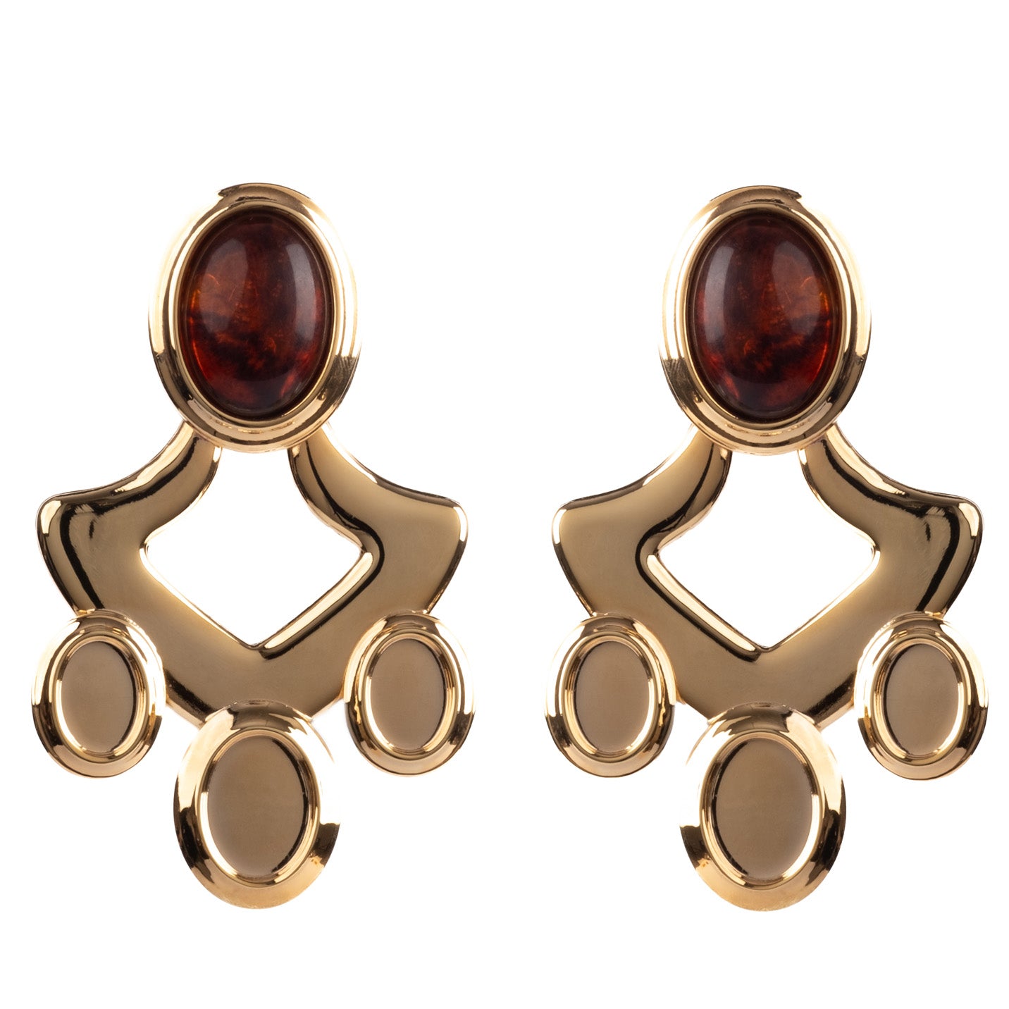 A M A R A N T A è il modello ideale per chi non ha paura di osare! Realizzato con piastre in ottone ultra leggere e castoni effetto specchiato, l'elegante pietra effetto tartarugato conferisce un tocco vintage. Placcati oro 24kt, nikel free, anallergici.