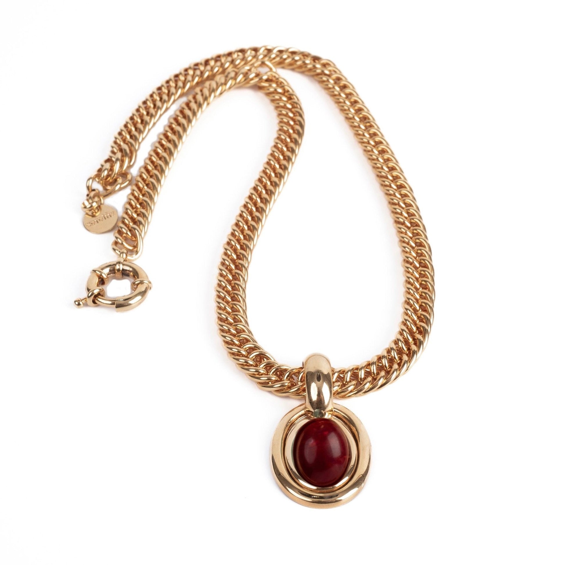 La nostra catena C A R L O T T A è l'ideale per arricchire la scollatura con un tocco di colore: il ciondolo bagnato in oro 24kt è disponibile nelle varianti colore ambra, osso, blu e oliva. Massimizza il look abbinandola alla catena M Y R I A M e al girocollo S A R A H oppure alla linea di orecchini coordinati.