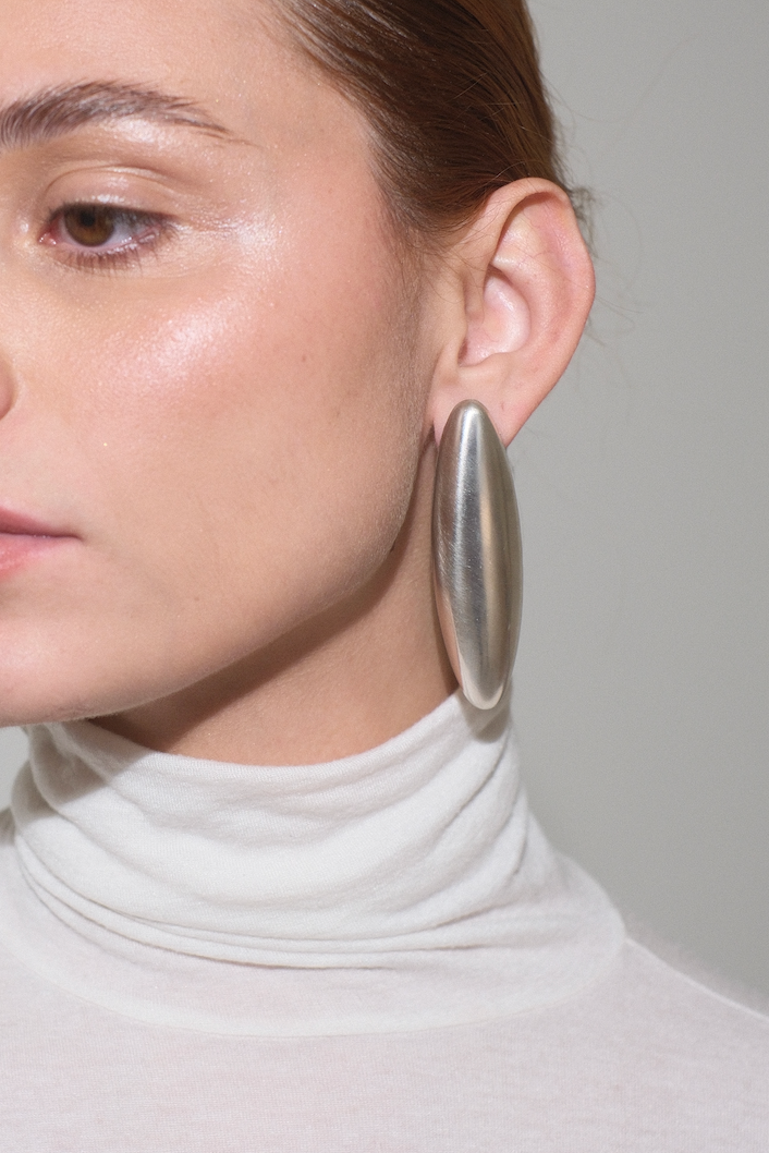Grintosi e seducenti i nostri orecchini F A B I A N A sono placcati in argento antico per un effetto rock.