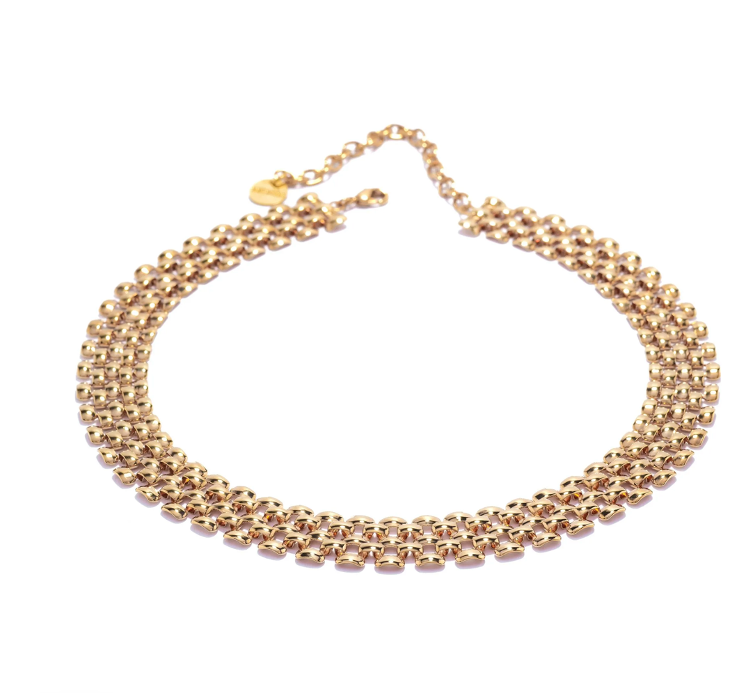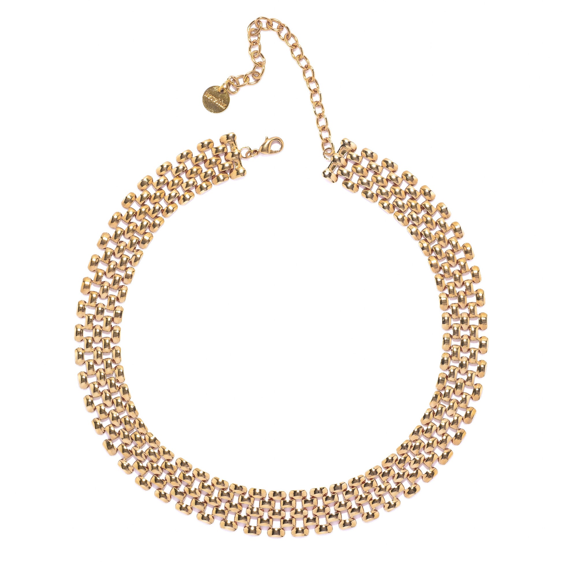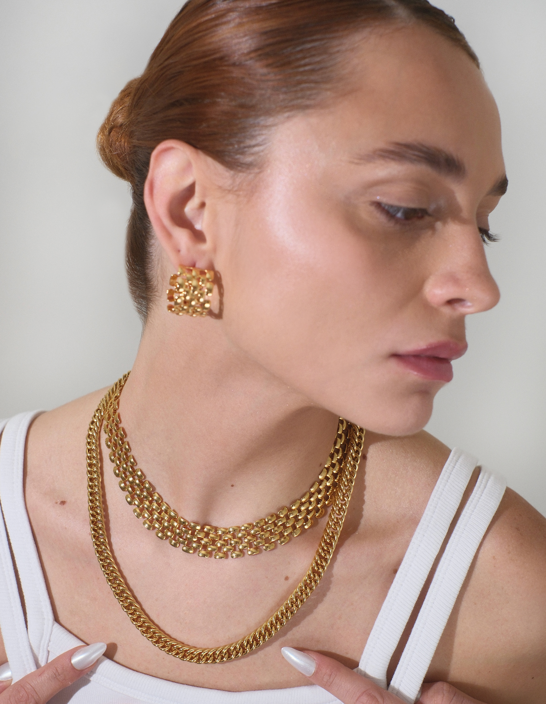 H E L L E N è la collana in maglia vintage che ognuna di noi ha visto al collo della mamma nelle foto di quando era giovane. Un accessorio evergreen nella versione in oro 24kt.