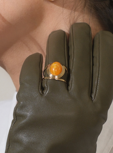 L'anello M A R A regala un tocco di colore nella versione nei toni della terra e color mandarino. Abbinalo agli orecchini C A M I L L A