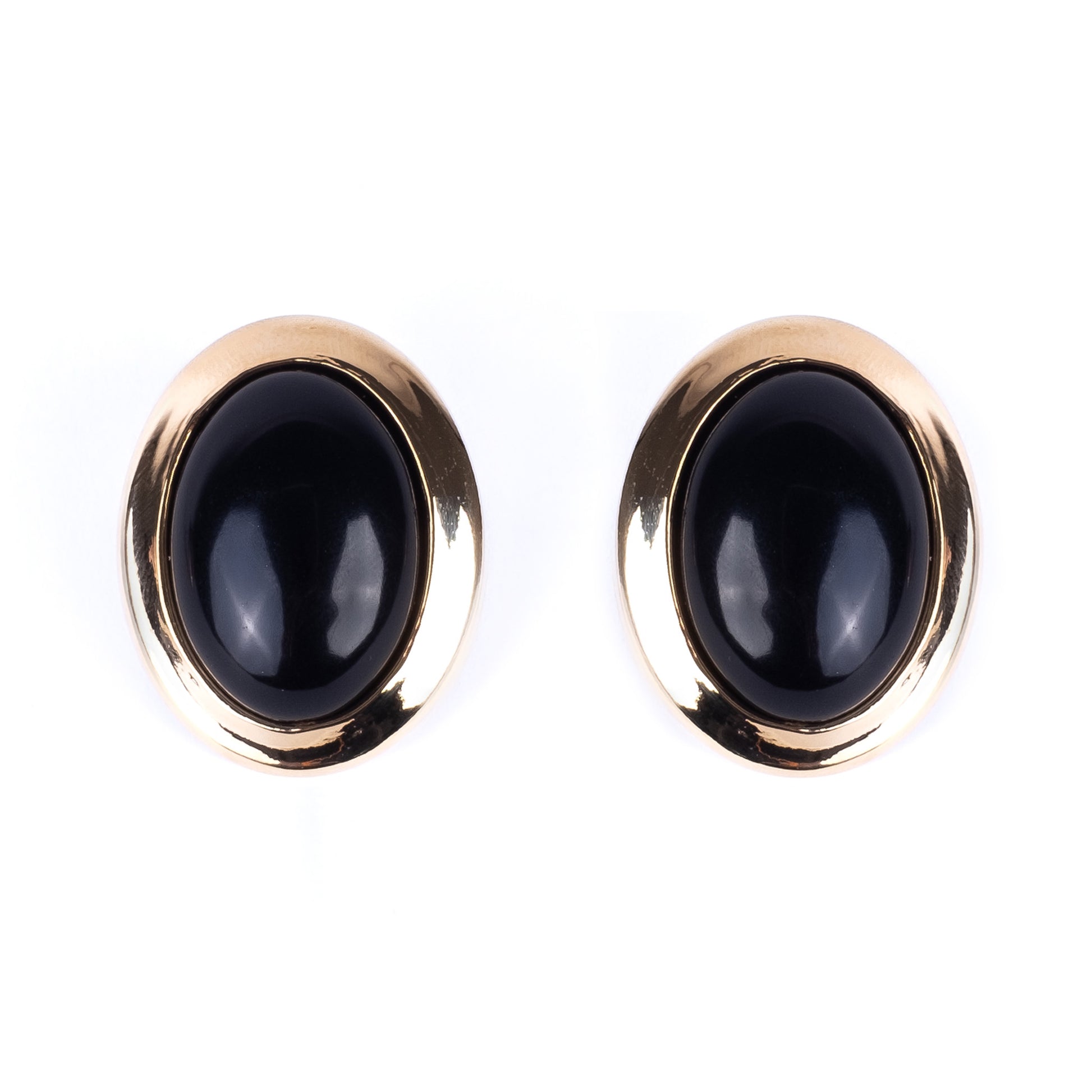 Coppia di orecchini al lobo in ottone con pietre cabochon nero