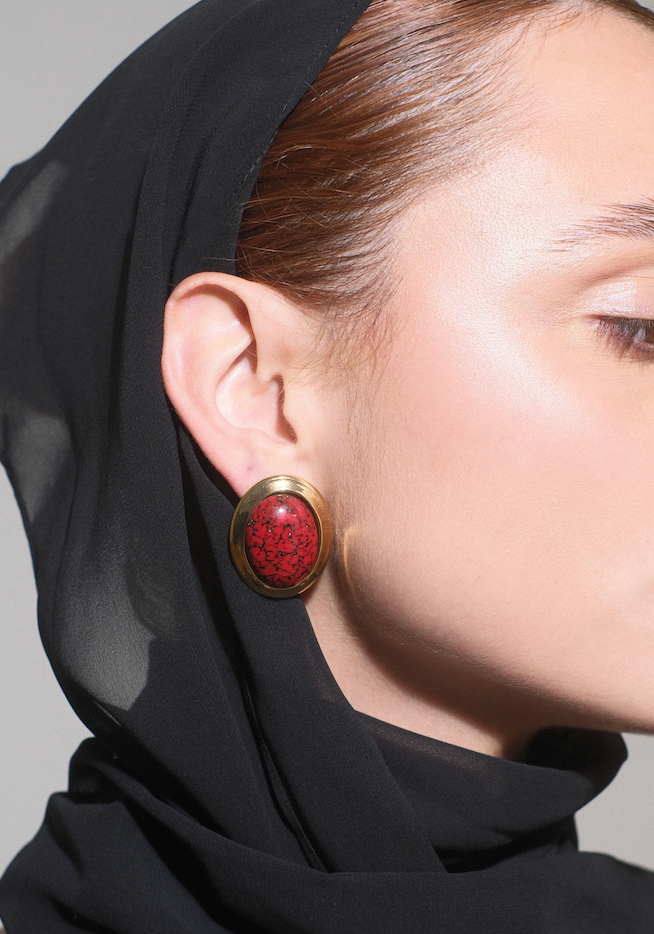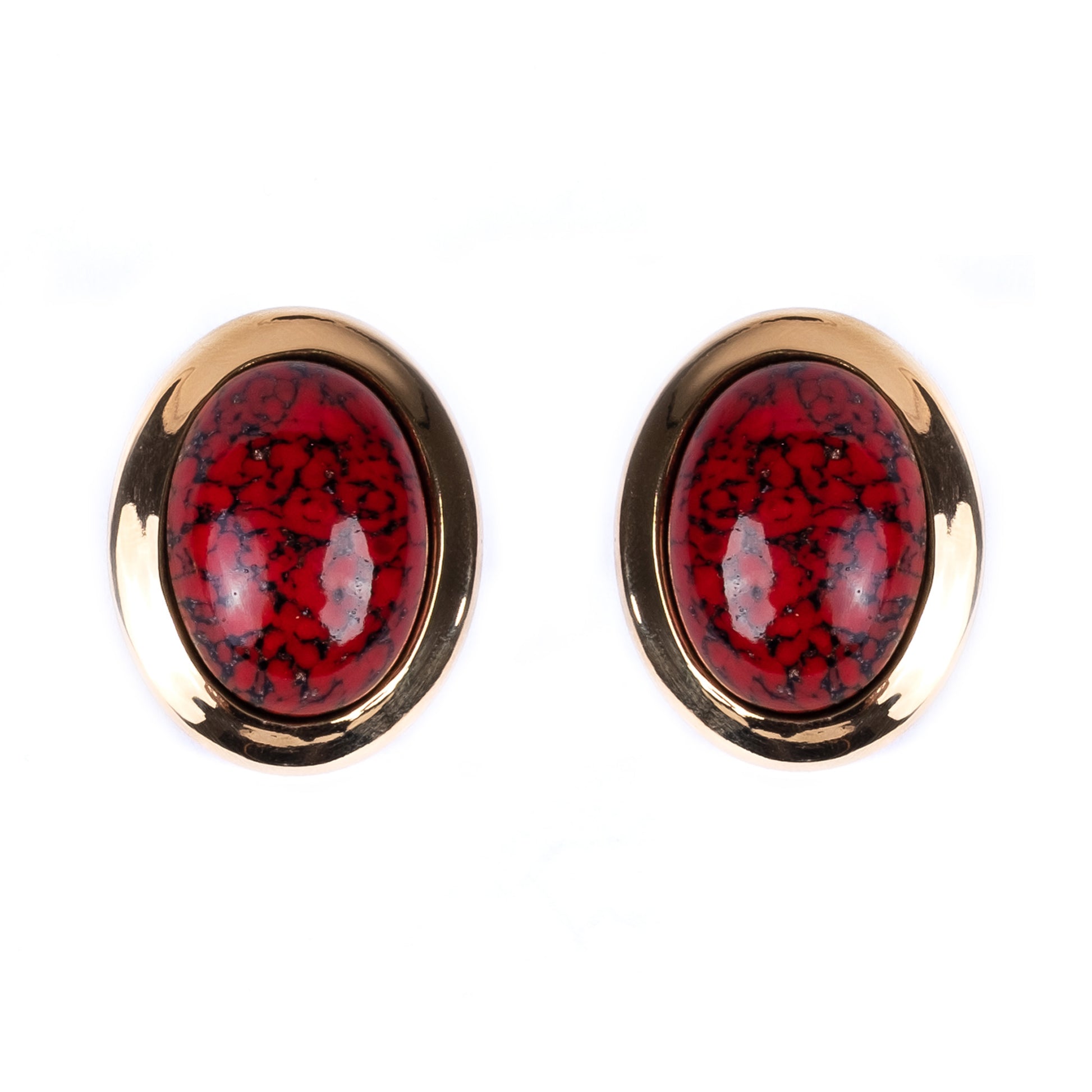 Coppia di orecchini al lobo in ottone con pietre cabochon rosse