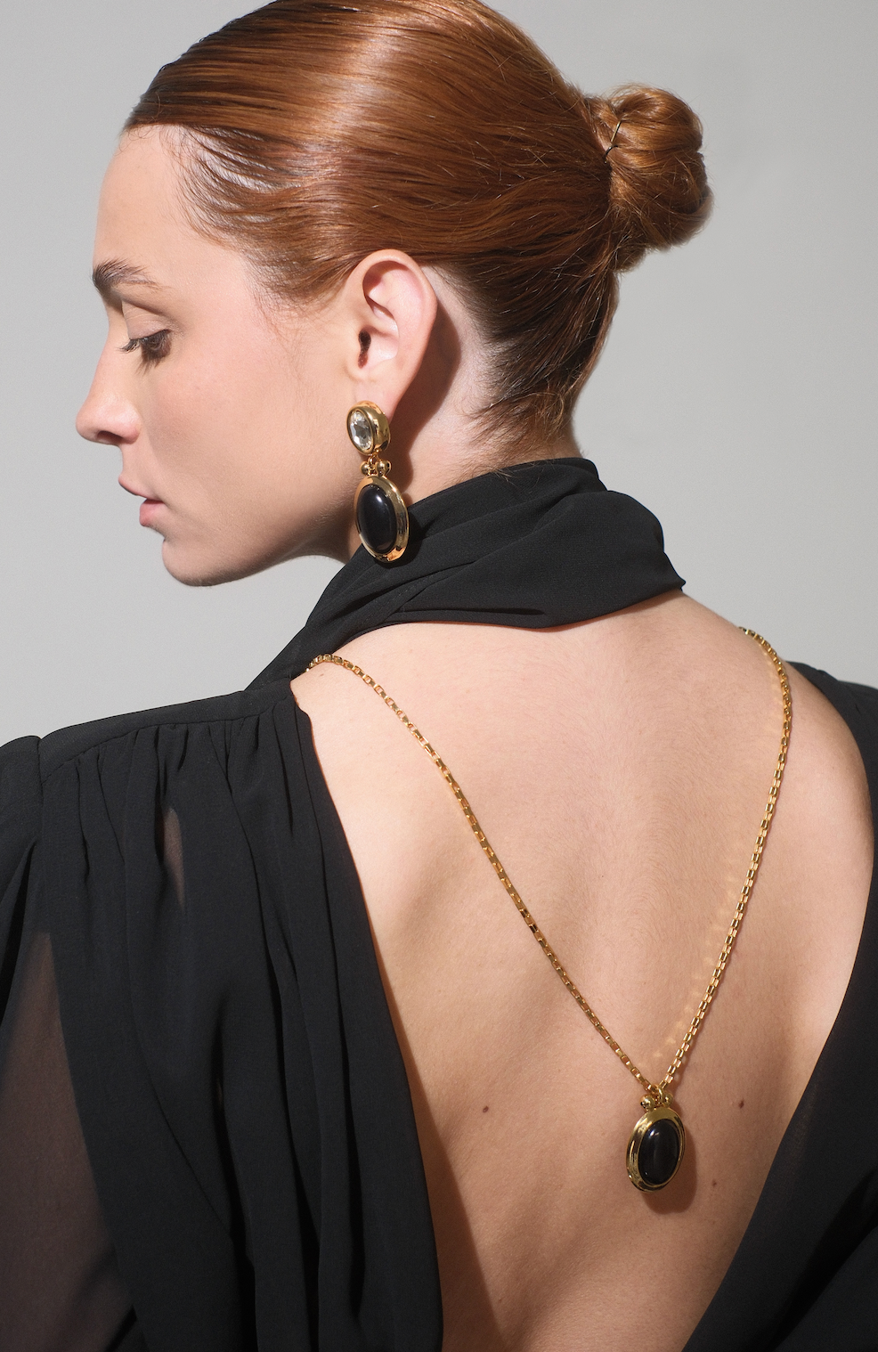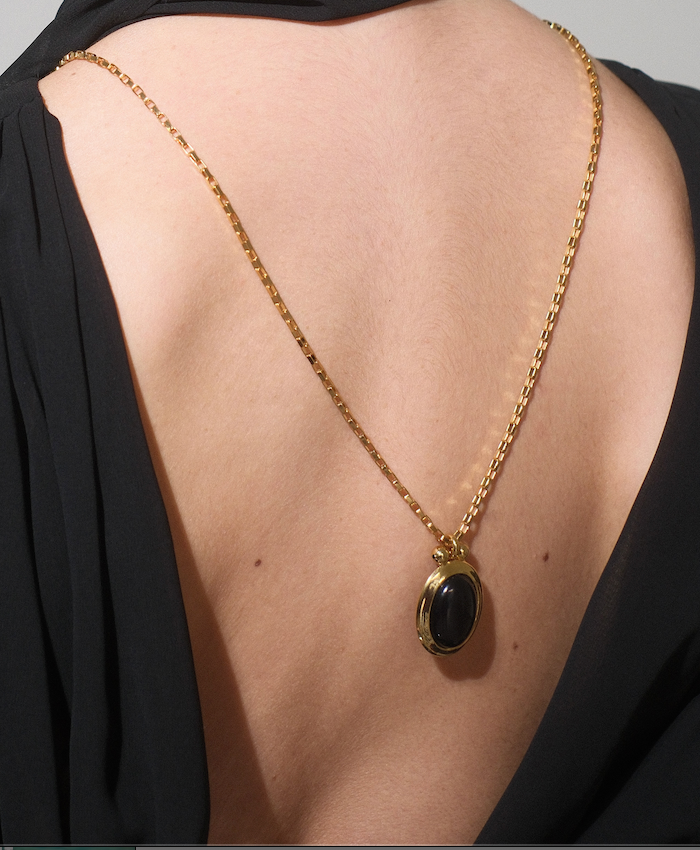 La nostra catena N O E M I è l'ideale per arricchire la scollatura con un tocco di colore: il ciondolo bagnato in oro 24kt è disponibile nelle varianti colore nero, turchese, osso ed effetto tartarugato. Completa la parure abbinandola al choker C L A R A e agli orecchini K O R A!