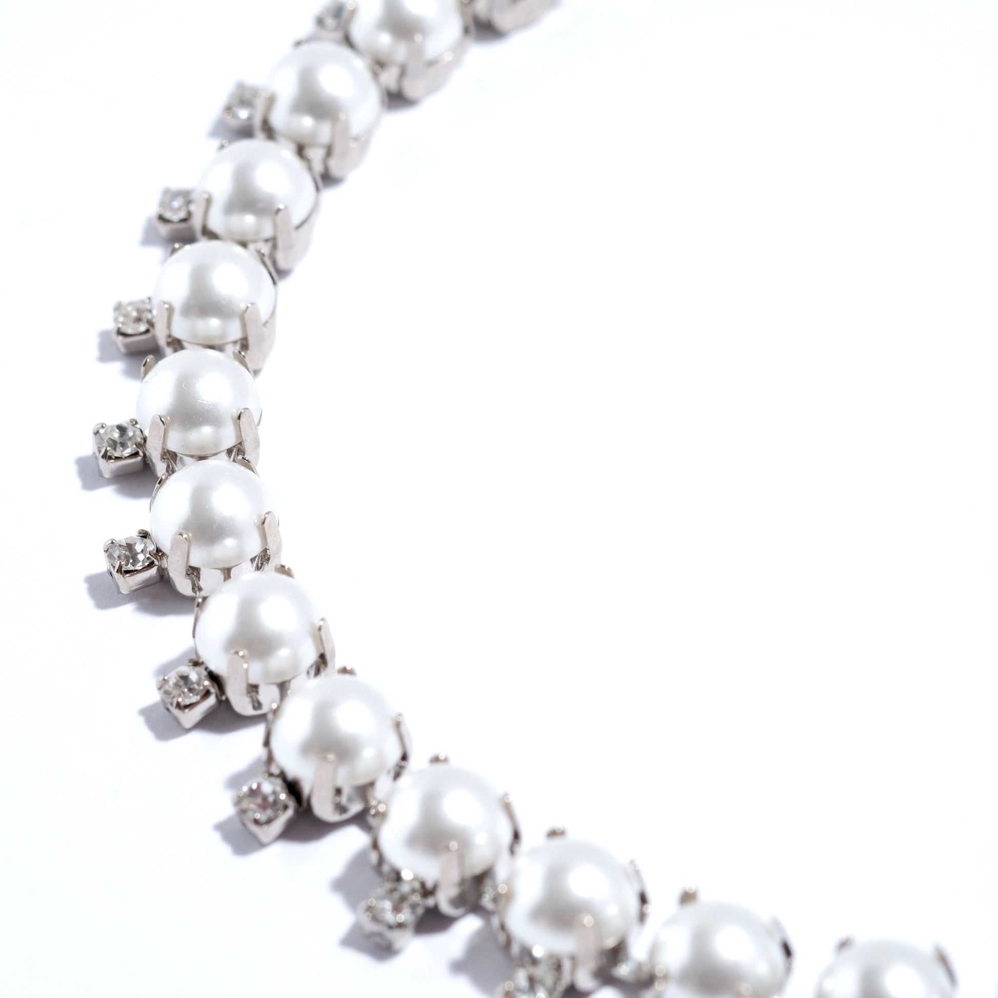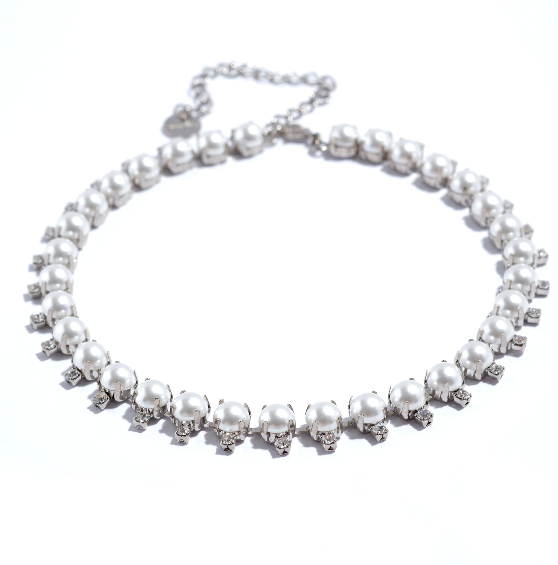 Ottone placcato palladio, con perle cabochon e strass cristallo.