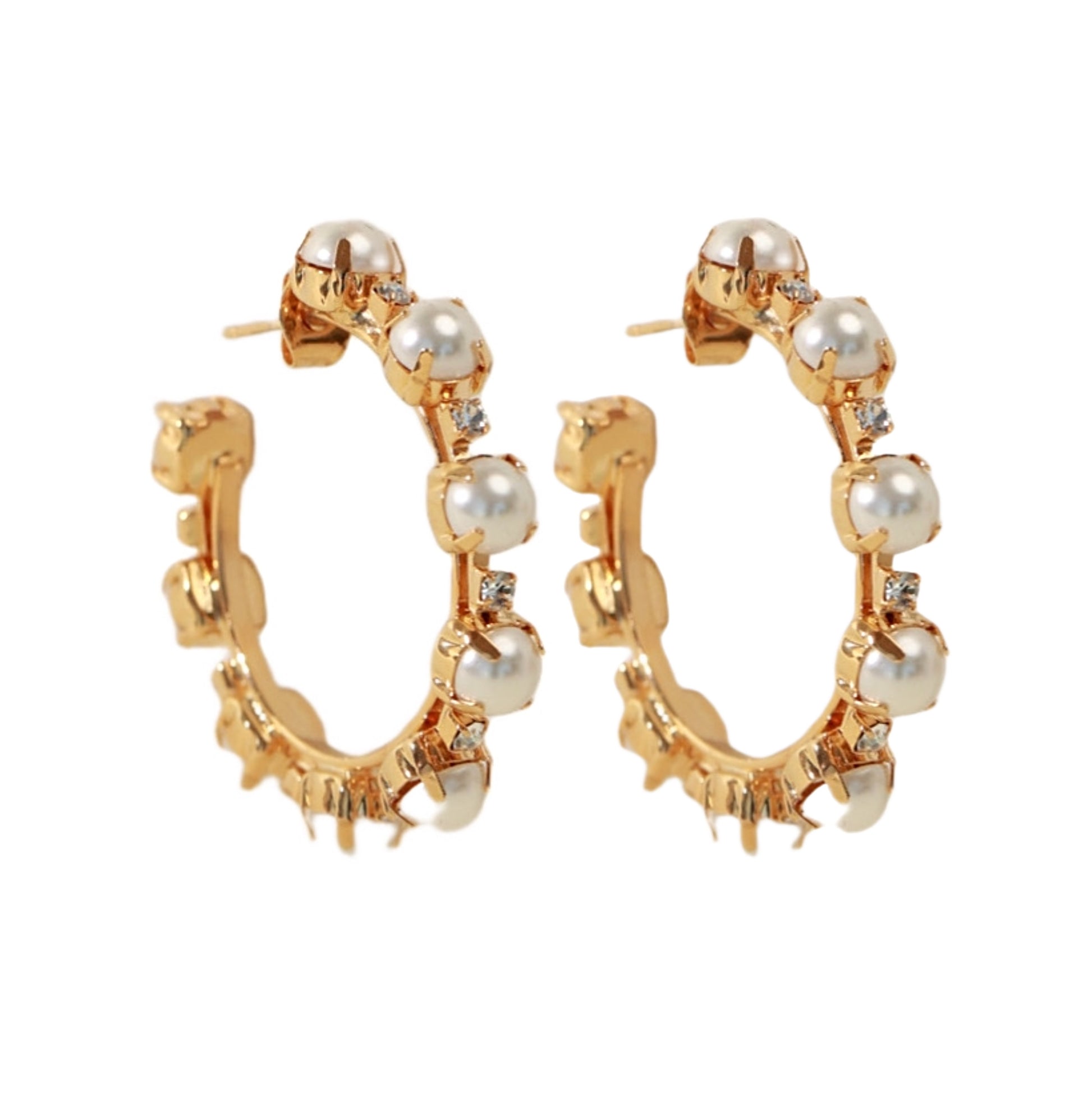 Coppia di cerchi con elementi in perla cabochon e strass cristallo