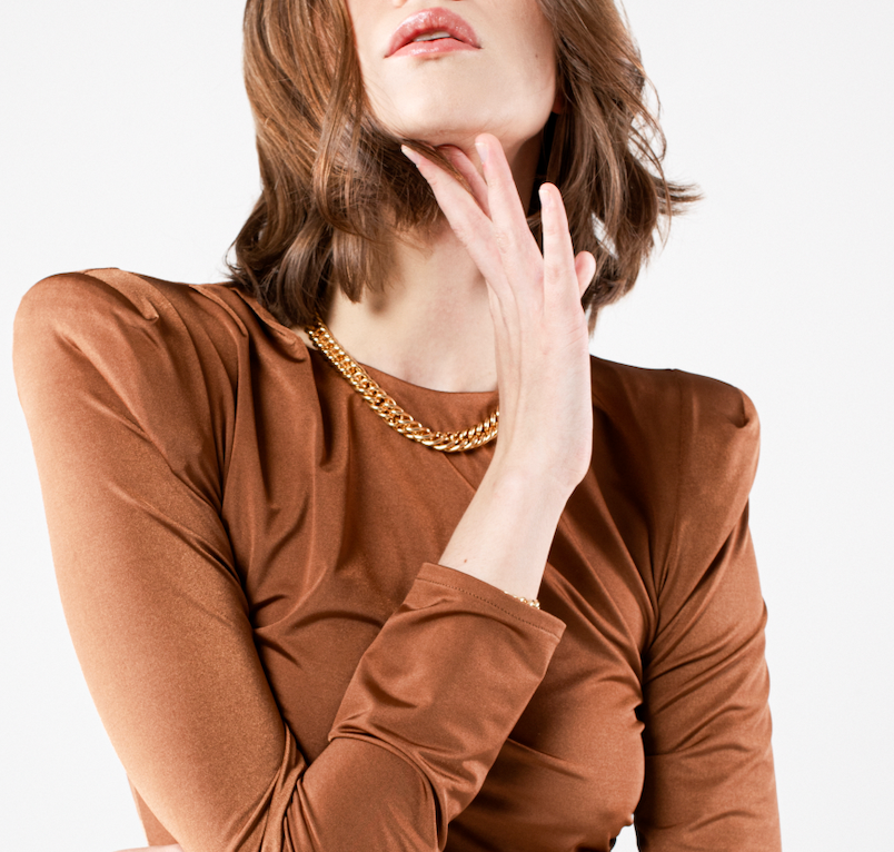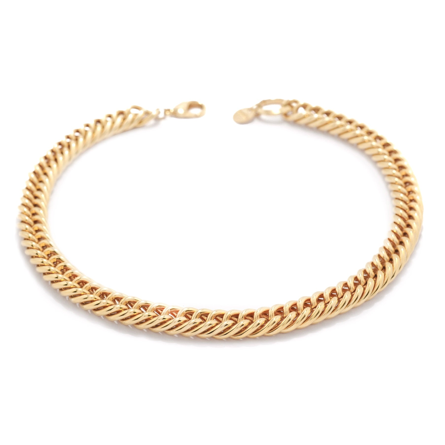 Le catene oro non sono mai abbastanza! S A R A H è bagnata in oro 24kt o palladio, perfetta per i tuoi momenti quotidiani. Completa il look con il bracciale coordinato.