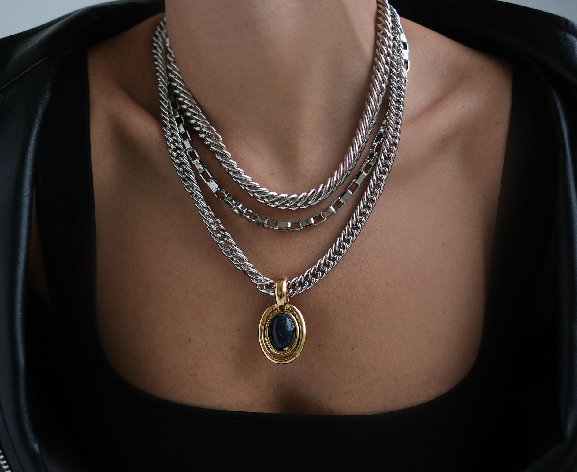 Le catene oro non sono mai abbastanza! S A R A H è bagnata in oro 24kt o palladio, perfetta per i tuoi momenti quotidiani. Completa il look con il bracciale coordinato.