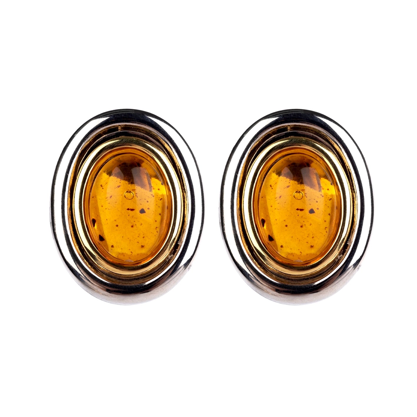 Coppia di orecchini al lobo in ottone con pietre cabochon ambra
