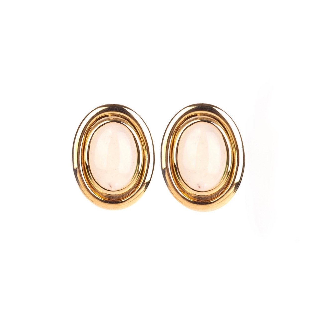 Coppia di orecchini al lobo in ottone con pietre cabochon osso